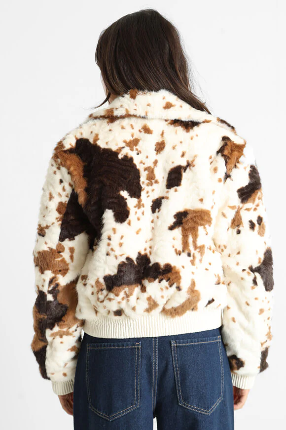 Crop Kunstpelzjacke - Creme + Braun