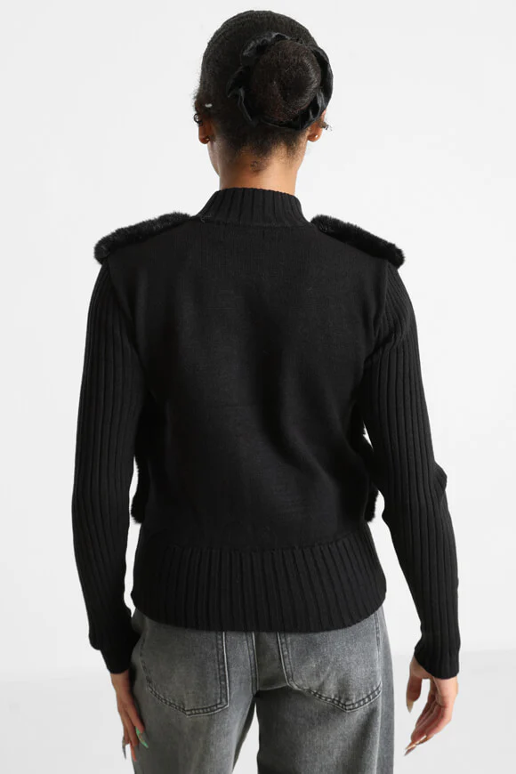 Strickjacke mit Kunstpelz - Schwarz